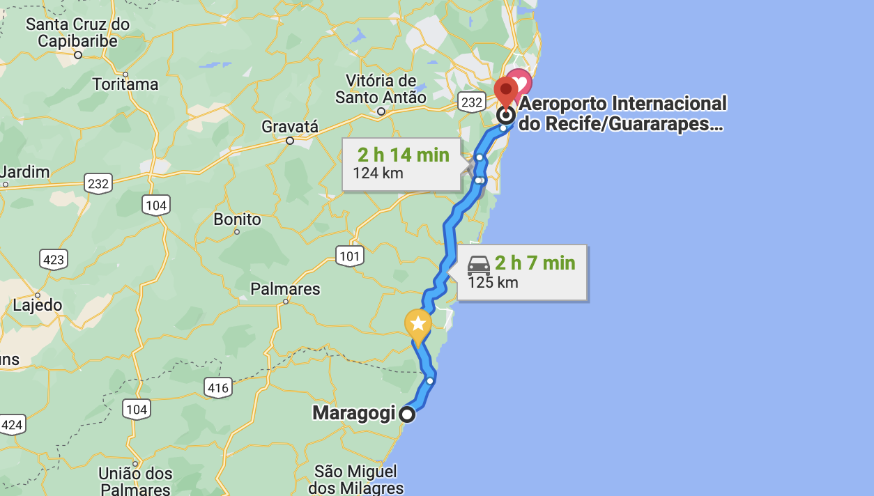 Recife para Maragogi - Fazemos Transfer chegadas e saídas, entre o Aeroporto de Recife-PE e os Hotéis e Pousadas de Maragogi e Região.
